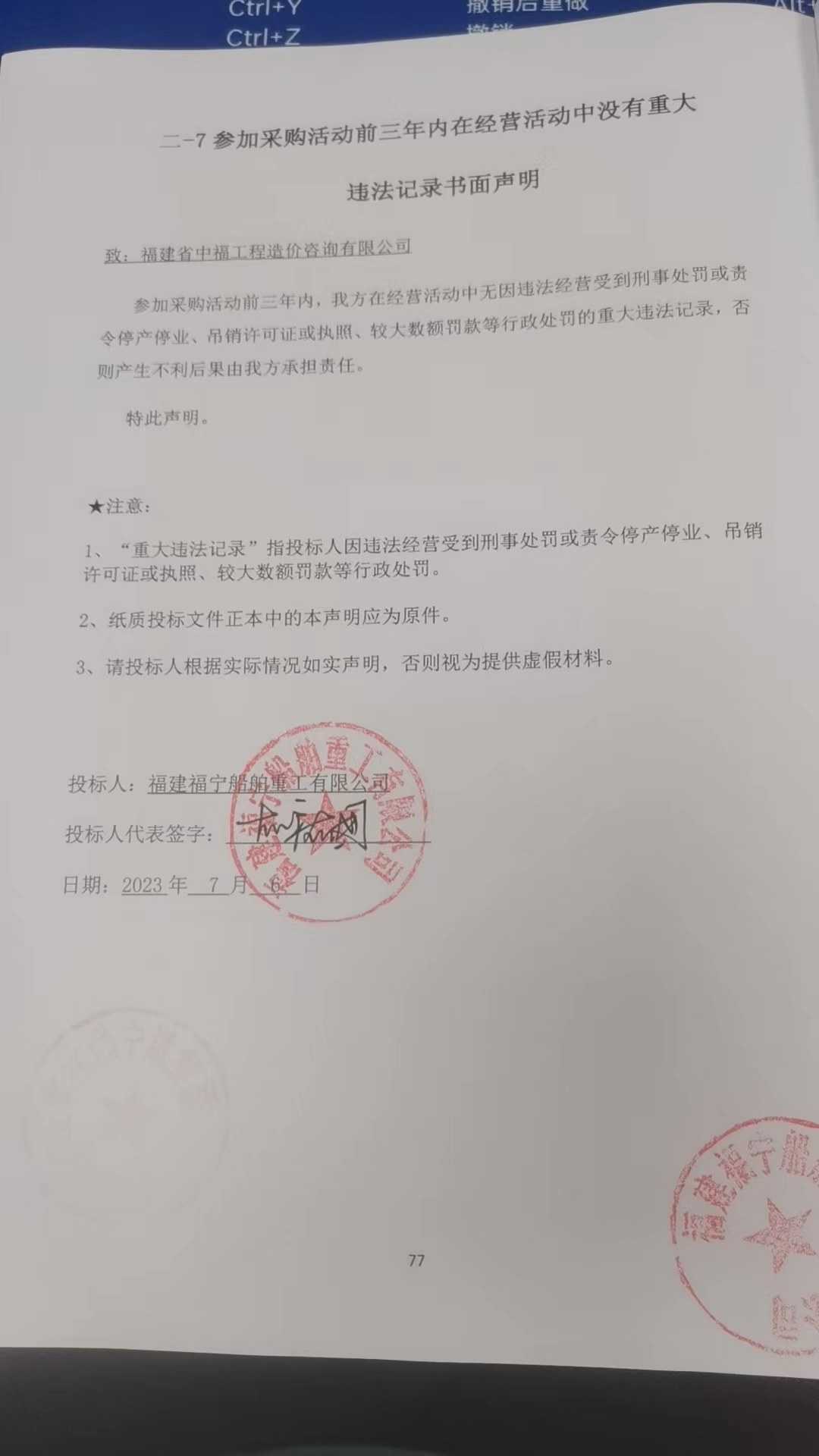 供應商名稱:福建福寧船舶重工有限公司