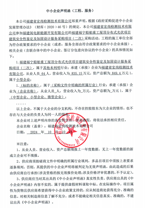 二、項目名稱:福建福寧船舶重工屋頂分布式光伏項目建筑安全性鑒定及加固設計服務采購項目(二次)